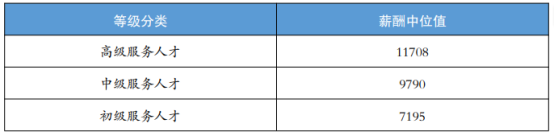 服务型人才方面,高级服务人才薪酬中位值为11708元/月,中级为9790元/月,初级为7195元/月。这一数据反映了北京服务行业专业化进程中的薪酬提升。